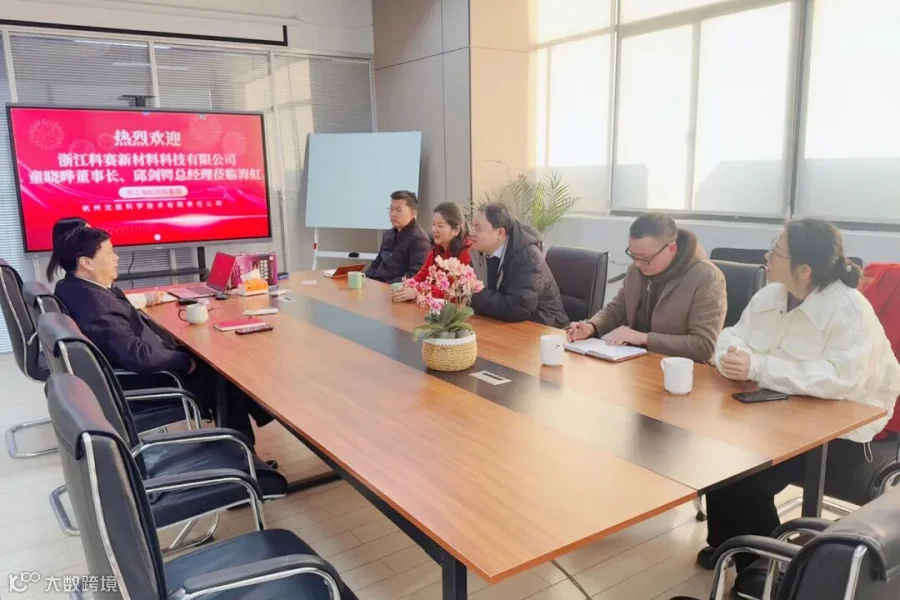 浙江科赛新材料科技有限公司董事长童晓晔董事长和邱剑锷总经理及技术人员一行到沈括科学技术研究院参观考察,研究院院长陈海贤及相关工作人员参与了接待。