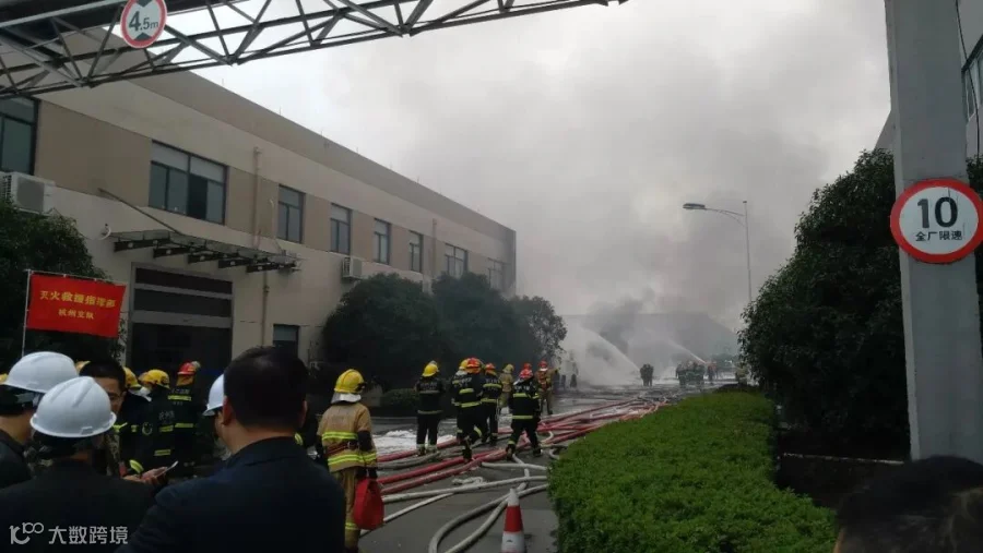 今天上午10时,浙江海普顿新材料科技有限公司成品仓库失火。