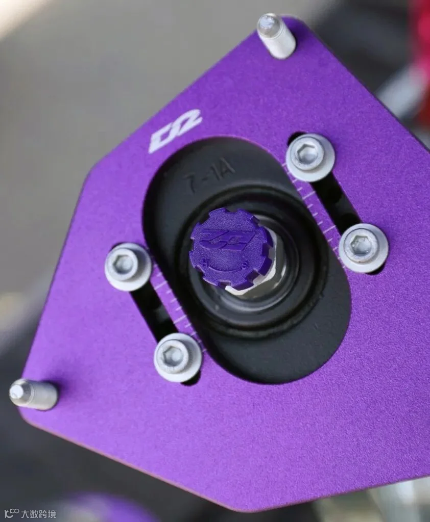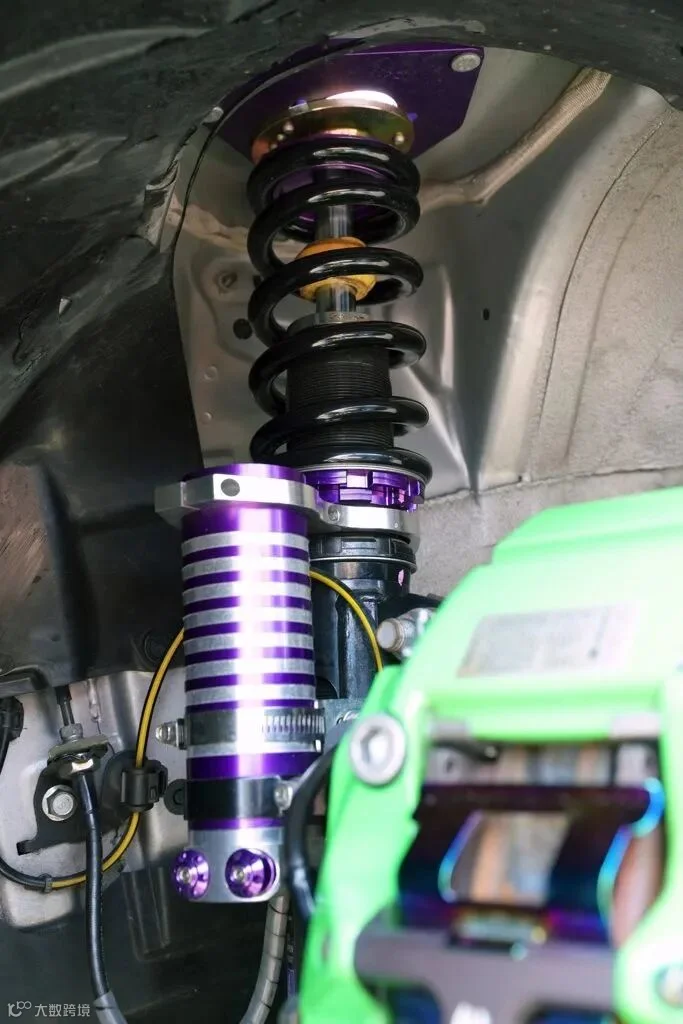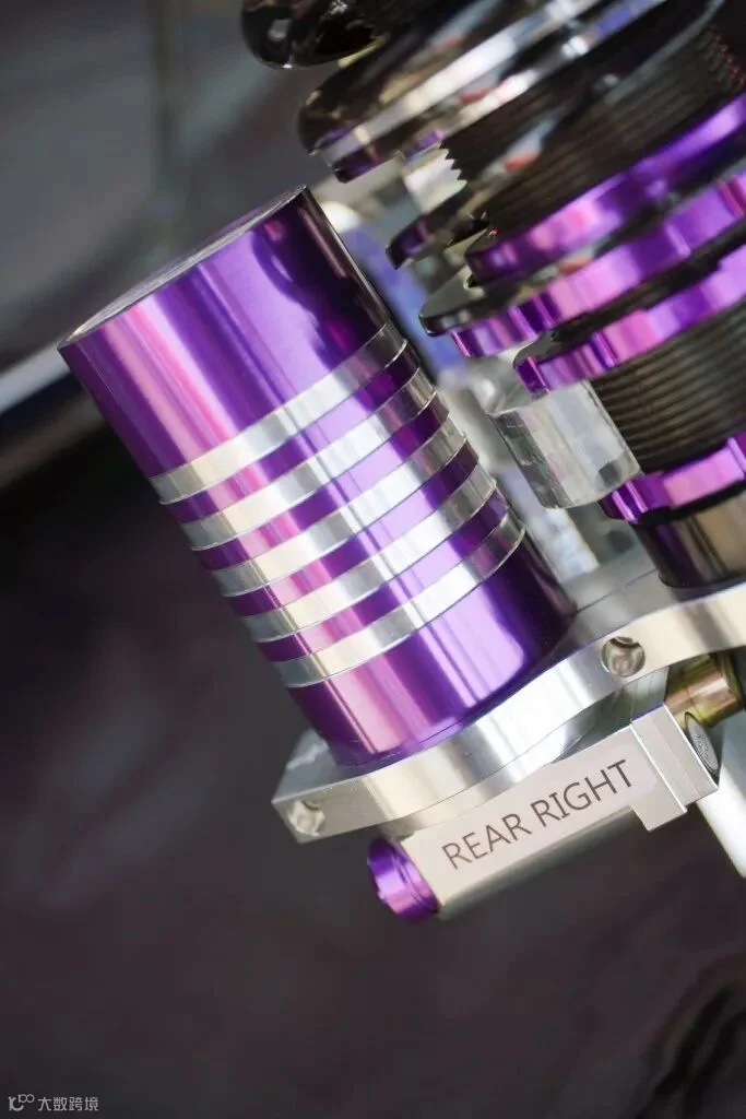 为了通过单桶减震器和锻造铝锁片实现轻量化,在螺纹上涂上了防锈漆以提高耐用性。可以在保持行程量的同时改变车身高度的全长调节型,36段阻尼力调节,以及根据车型可调节的鱼眼塔顶。