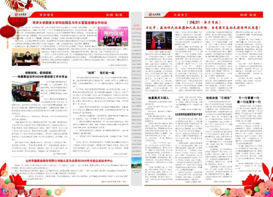 2020年华鑫集团围绕全年生产经营目标,以重点项目为抓手、科技创新为引领,创新体系建设取得积极进展,自身创新研发水平显著提高,成果丰硕,为集团经济发展注入强大动力。