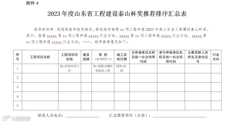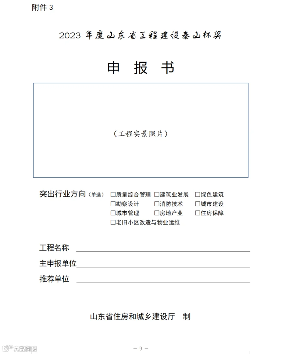 3.2023年度山东省工程建设泰山杯奖申报书