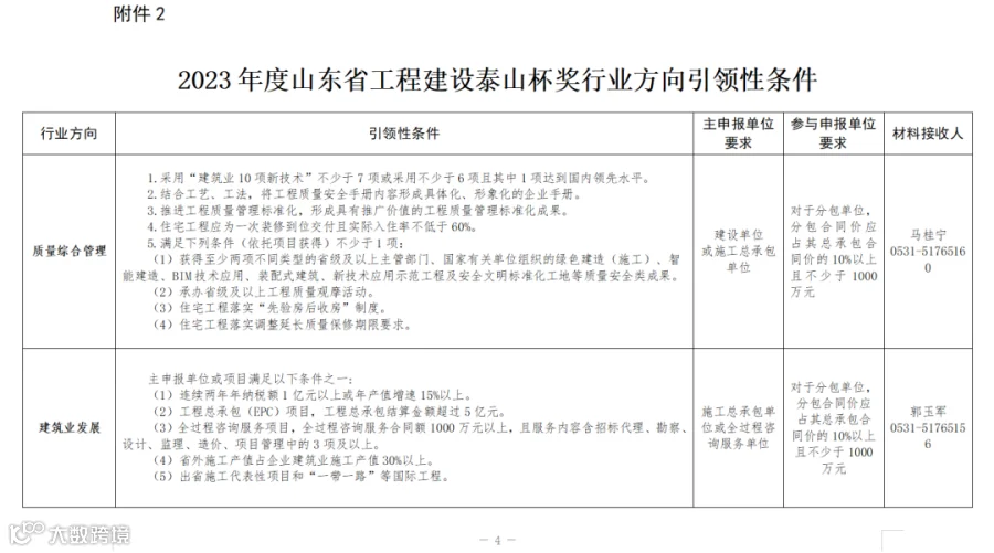 2.2023年度山东省工程建设泰山杯奖行业方向引领性条件
