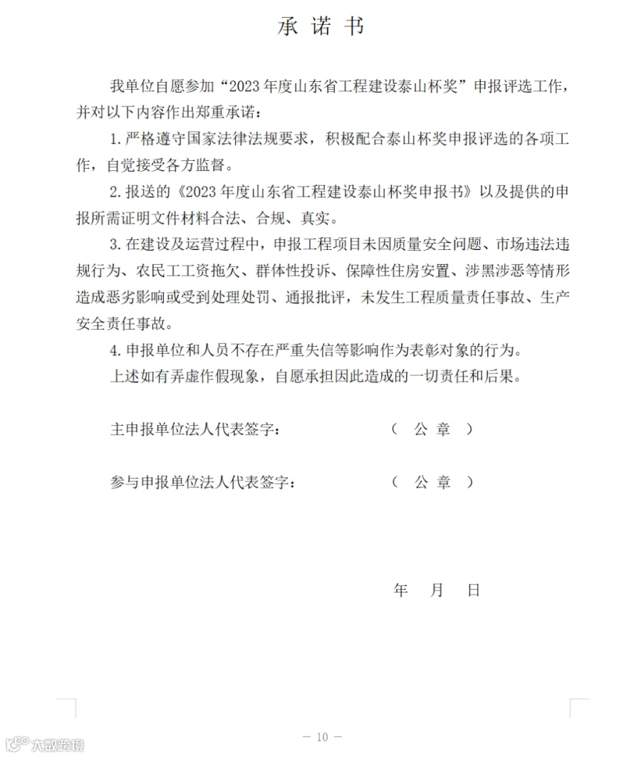 2.申报单位对所申报材料的真实性负责。发现弄虚作假的,撤销其泰山杯奖称号,并记入不良行为记录,5年内不接受其申报。