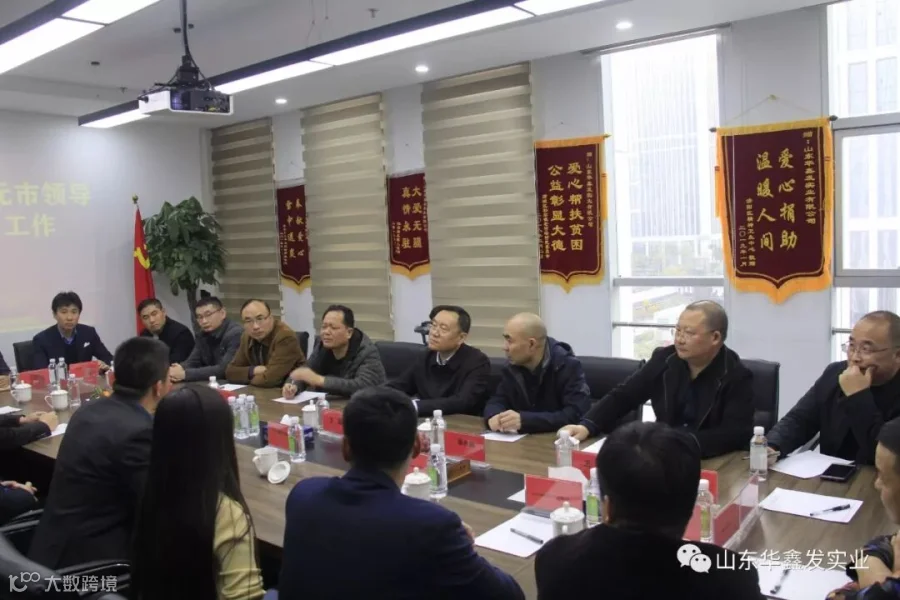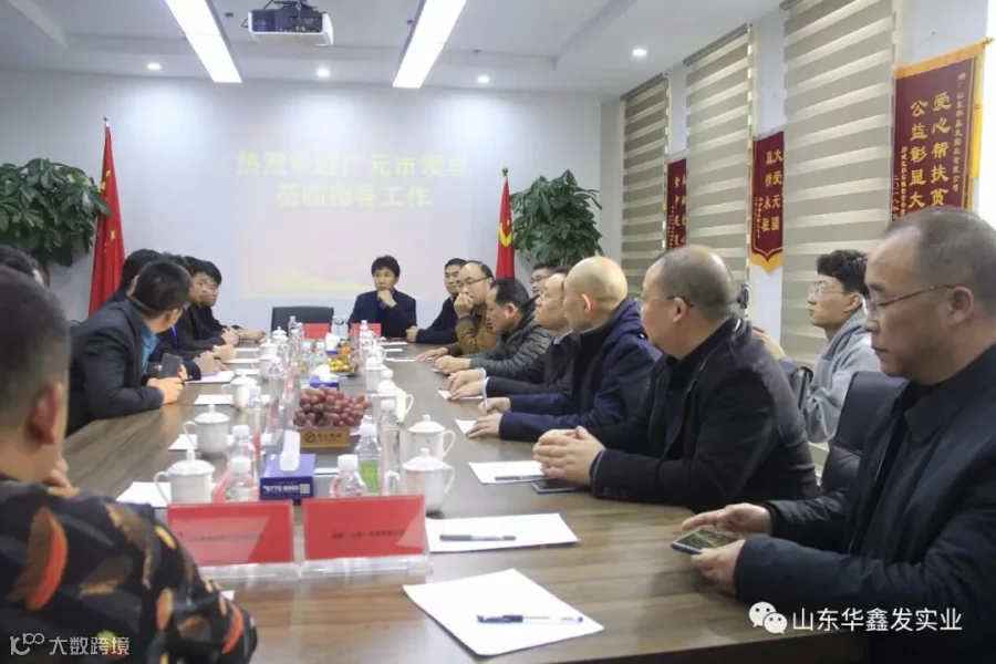 2019年11月21日,在广元市人民政府副秘书长王磊率领下,有广元市经济合作局局长赵 平、 市经济合作局副局长蔡永斌 、 市文化广电旅游局副局长仲 斌 、市经济和信息化局副县级干部权宏伟 、市自然资源局土地储备中心主任王 勇 、 市经济合作局科长付丕选 、市经济合作局山东分局局长孙跃龙等组成的广元市政府考察团,来到位于济南汉峪金谷的中川禧福实业集团总部大楼,参观创弘产业园,并与集团各分公司负责人进行了座谈。