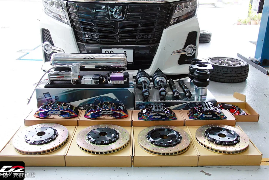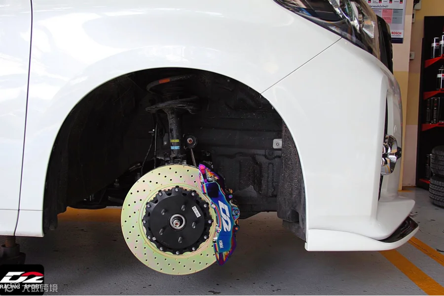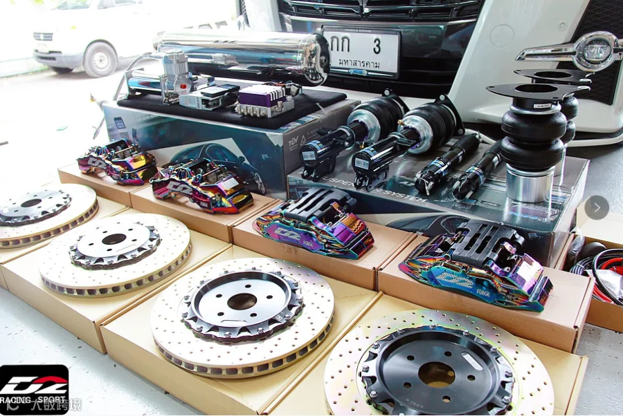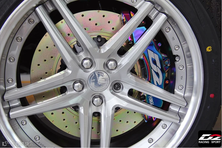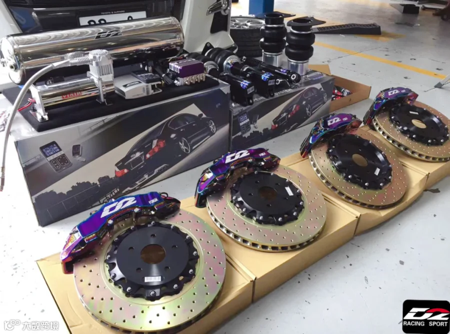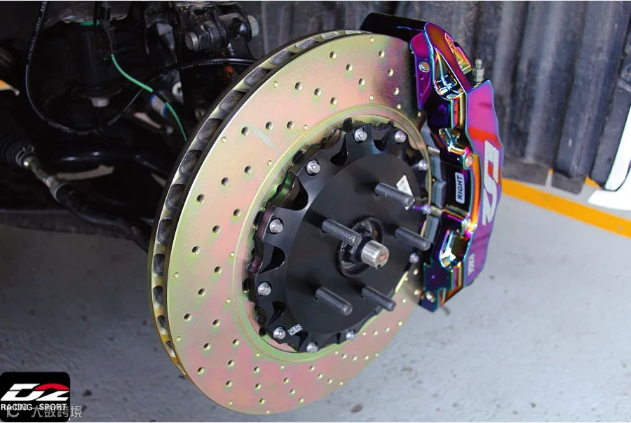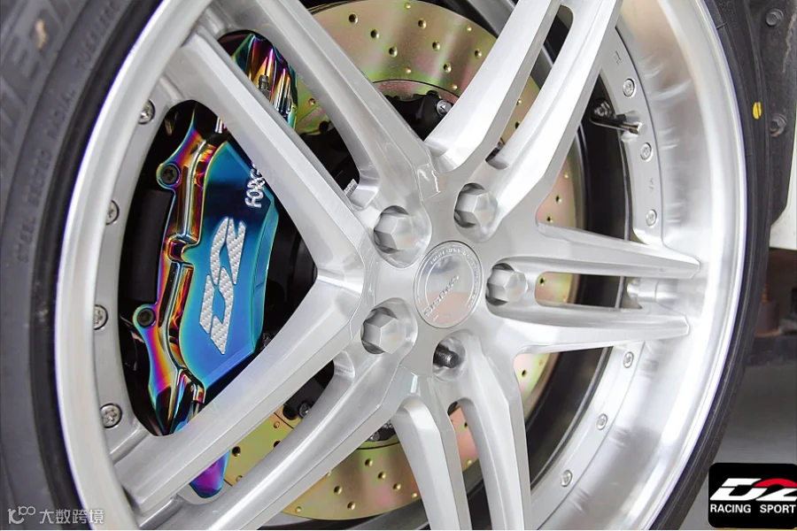 ●D2此款电镀锻造卡钳,此8活塞前煞车系统是直径380mm以及32mm厚的碟盘尺寸,适用于19吋或19吋以上车轮