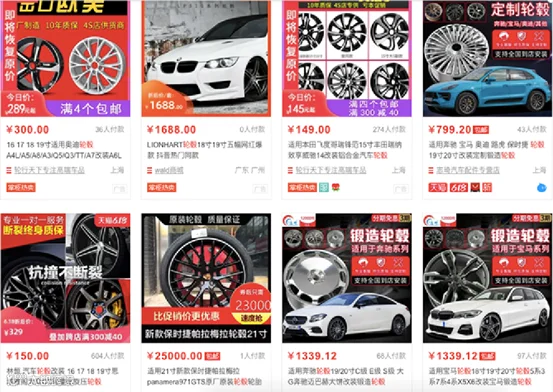 图:某宝上有各式各样的轮圈销售,价格有高有低