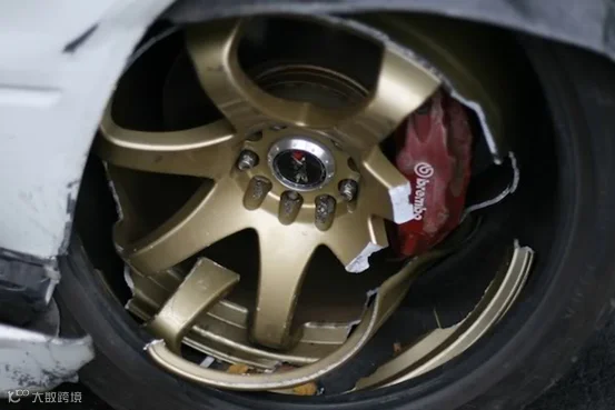 图:轮圈受力相当复杂,如果设计或者用料出了差错,质量不过关,在遇到冲击等问题时很容易出现上图这种情况