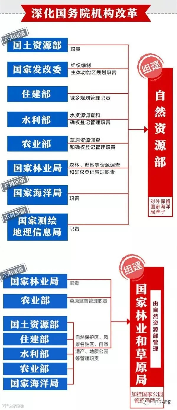 组建自然资源部,整合住房和城乡建设部的城乡规划管理职责。