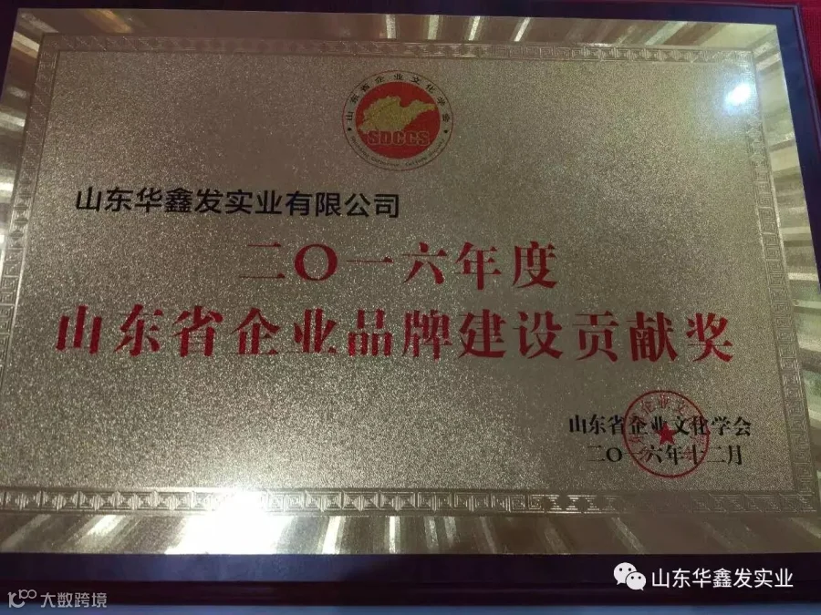 山东华鑫发实业有限公司在本次大会上荣获“2016年度山东省企业品牌建设贡献奖”荣誉称号!