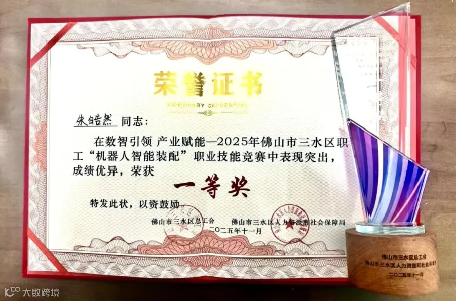 近日,2025年佛山市三水区职工“机器人智能装配”职业技能竞赛决赛圆满落幕。精密公司员工朱皓然凭借过硬的专业技术和稳定的临场发挥,从全区35名优秀选手中脱颖而出,荣获大赛一等奖!这一殊荣,不仅是个人的荣耀,更是精密公司深耕智能制造、大力培育高技能人才战略的诠释。