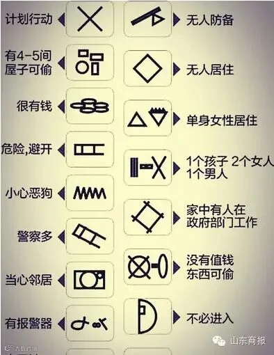 下面这些是小偷踩点后留下记号的含义,看到类似的要提高警惕!