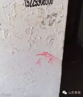 孙先生说,他来到母亲住的小区,发现楼道有人画了红色的横线,本以为是小孩子画着玩的,但走到四楼,正对楼梯的一家久无人居住的门锁被撬,感觉不对劲,孙先生就询问了母亲及周围邻居。