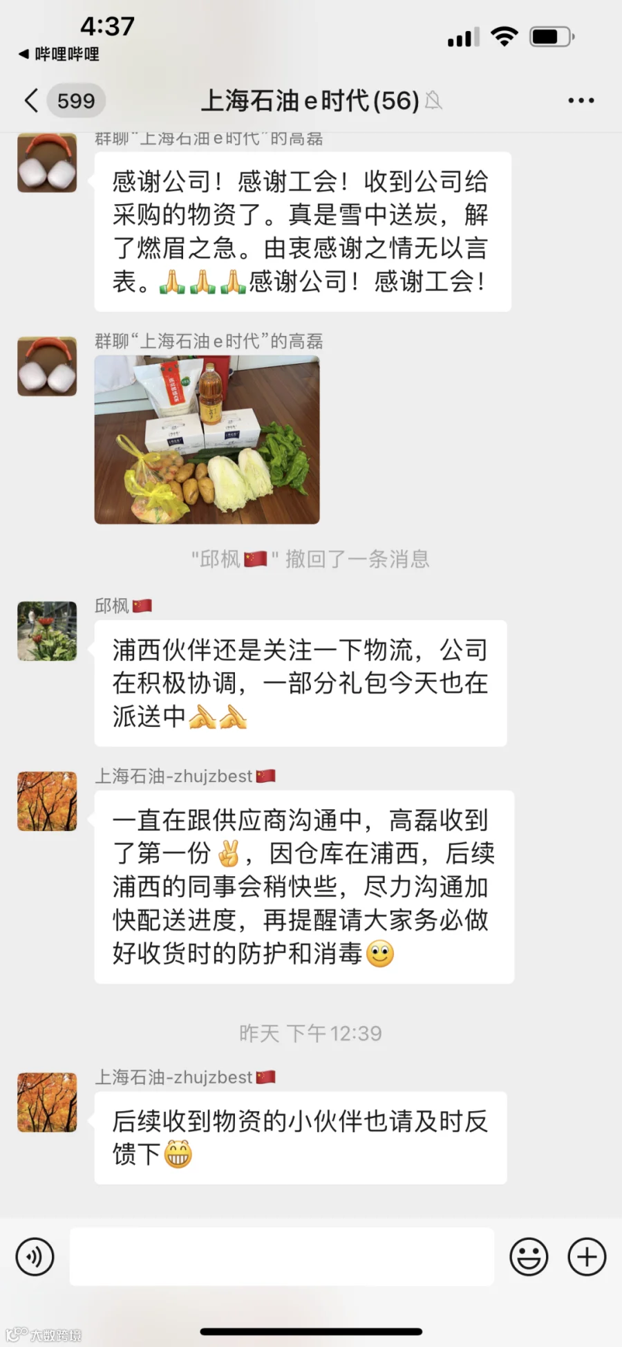 “我和我母亲那边都收到工会安排的物资了,非常感谢。”