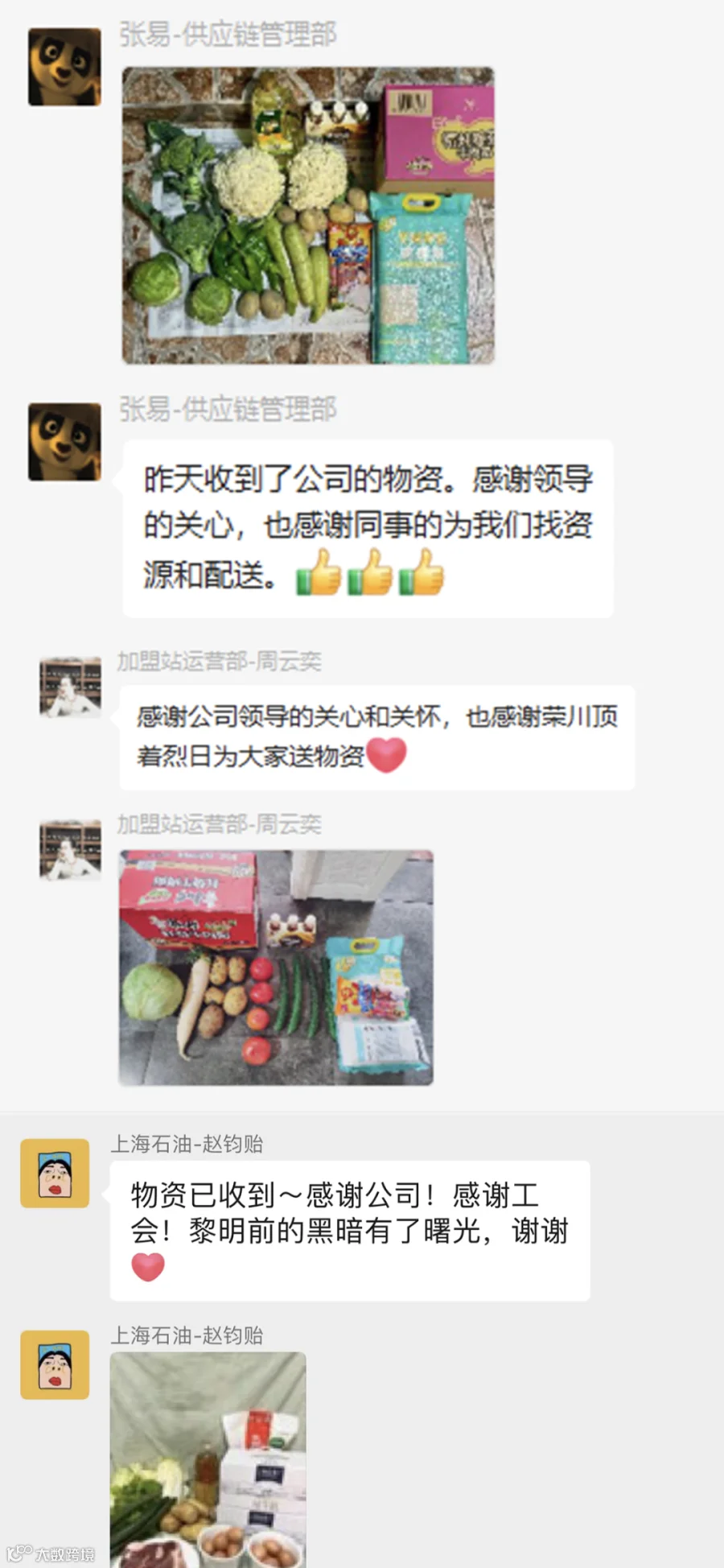 接龙式的感谢,频闪于在沪所属企业的微信沟通群,字里行间流露出在沪员工们的激动、喜悦、感动、感激。跨越重重“山海”的生活物资,是中化石油销售对职工最为坚定的守护!
