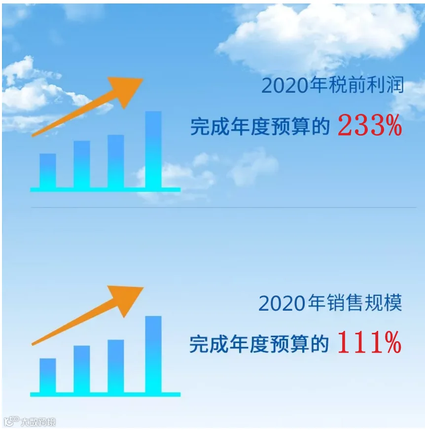 会议开篇,大区公司财务总监阿依丹做2020年公司绩效报告。2020年,大区公司核心经营业绩超预算目标,利润总额完成年度预算的233%;销售规模完成年度预算的111%,同比大幅增长并创历史新高。