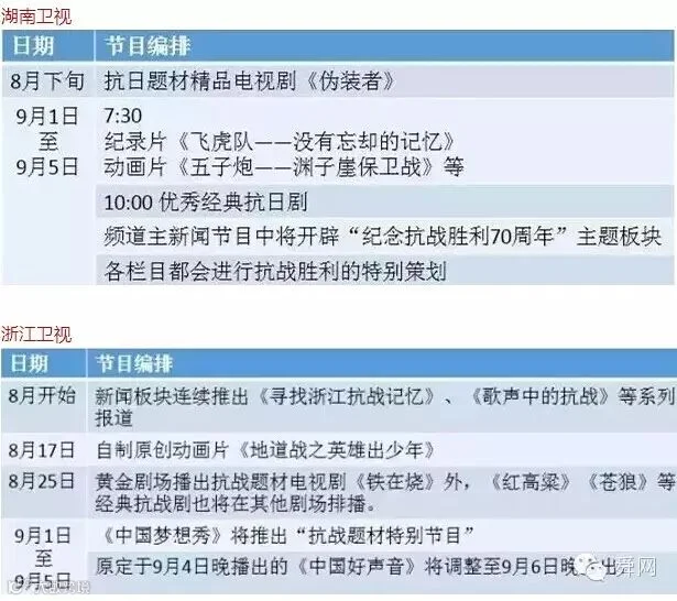 娱乐节目停播期间,各大卫视将用新闻、反法西斯电视剧、纪录片、专题节目等来填补档期,抗日题材电视剧自然不用说,从8月下旬就开始风风火火的播了~