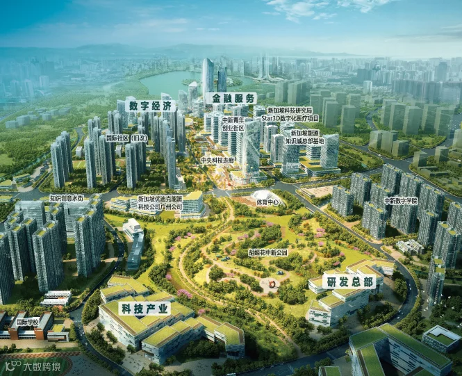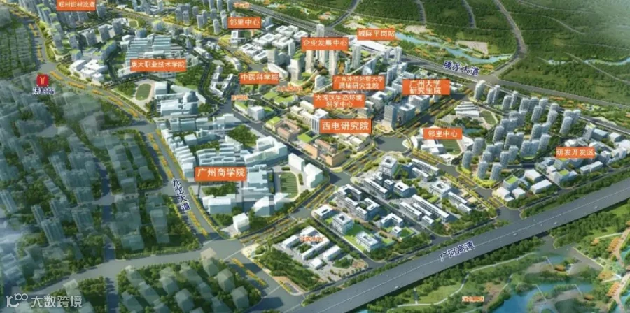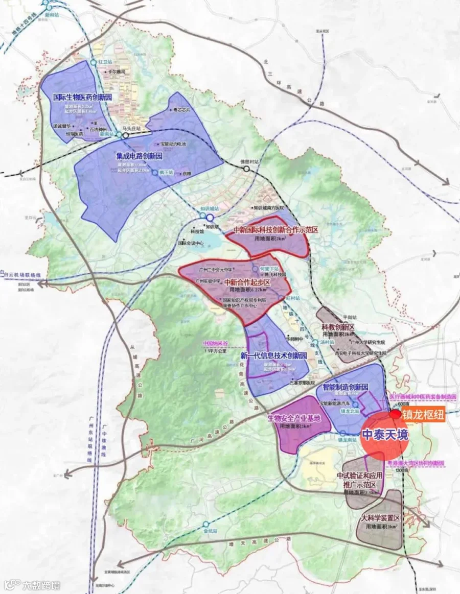 截止目前,新龙片区已落户了三大重磅项目:中试验证和应用推广区(粤港澳大湾区协同创新园),由中科院长春应化所黄埔先进材料研究院主导的大科学装置区,以及知识城科教创新区。