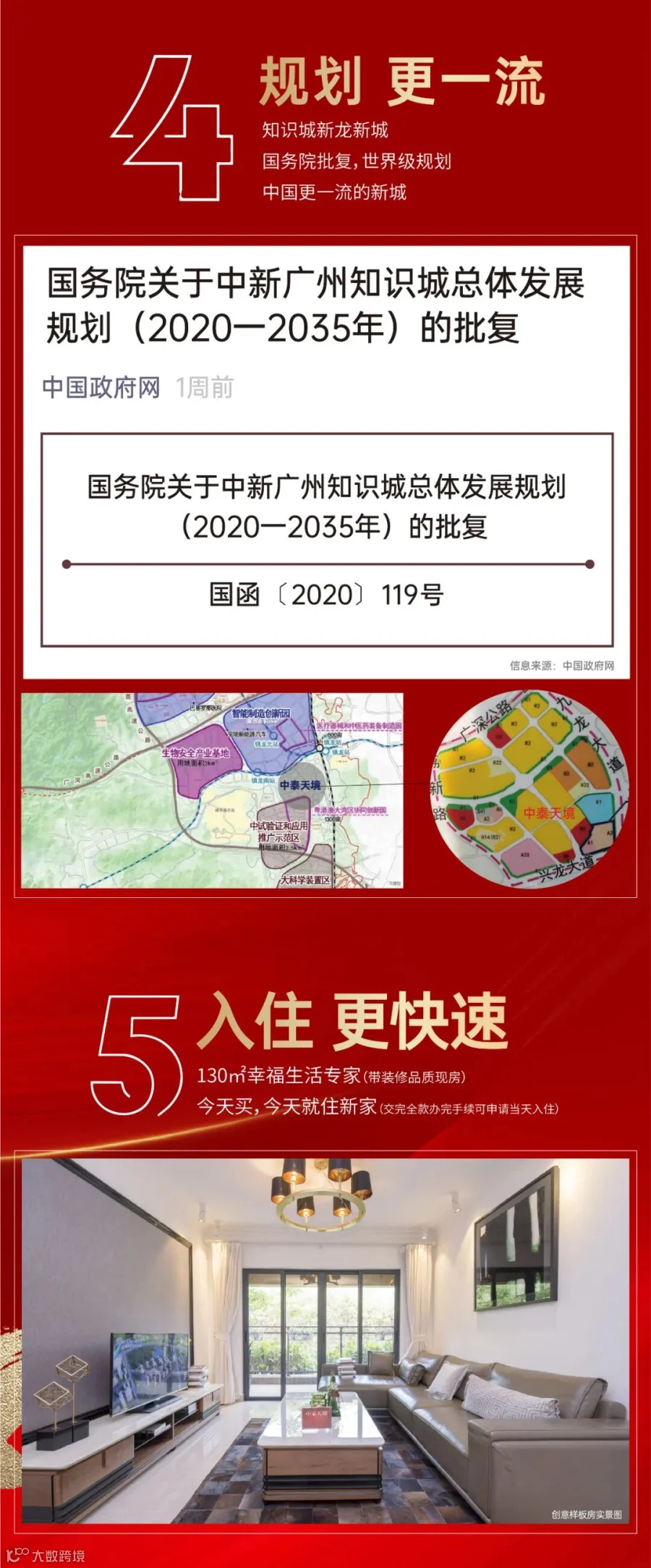 文内所涉面积均为建筑面积,图片仅为示意图,部分素材来源于网络。本宣传资料为要约邀请,不构成要约内容,具体信息以合同约定及政府最终审批为准。本资料发布时间为2020年9月,本公司保留对宣传内容修改的权利。预售证号:穗房预(网)字第20160765号;备案名:中泰天境花园自编三期。推广名:中泰天境。
