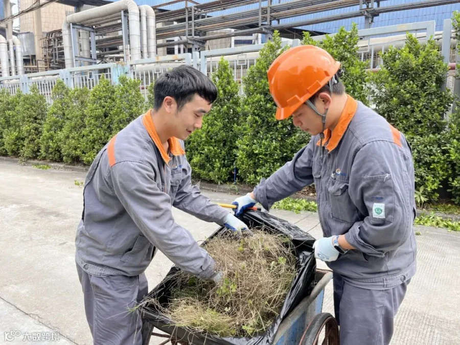 整个过程青年们认真仔细、有条不紊,经过近两个小时的辛勤劳动,厂区内的杂草杂物、残枝垃圾等都得到了有效清理,厂区环境面貌焕然一新。