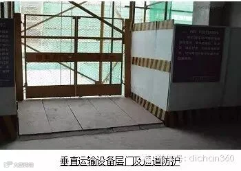 5.各种垂直运输接料平台除两侧设防护栏杆外,平台口还应设置安全门或活动防护栏杆