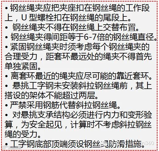 3)在正常运行时,安全钢丝绳应处于垂悬状态;工作钢丝绳的最小直径不得小于6mm;
