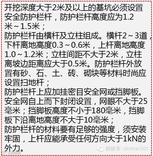 • 基坑边堆置土、料具等荷载应符合基坑支护设计要求且≥1.5m;