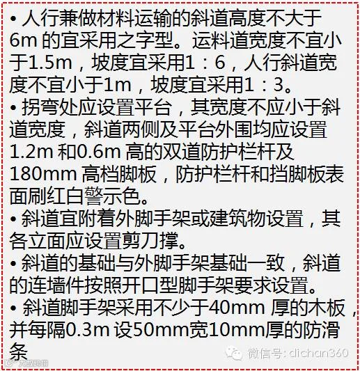 4.井架与施工电梯和脚手架等与建筑物通道的两侧边必须设防护栏杆;地面通道上部应设安全防护棚。双笼井架通道中间,应予封隔封闭