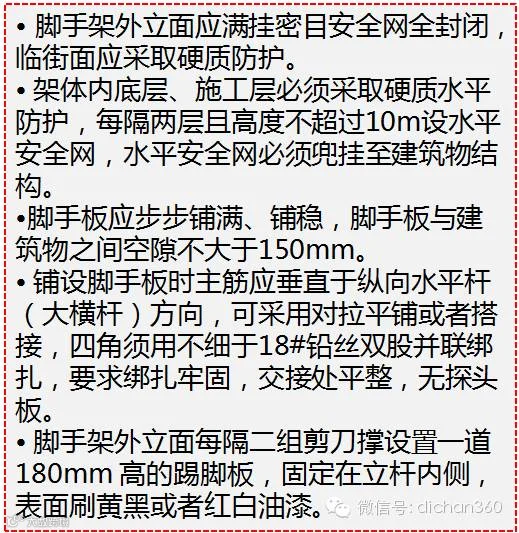 • 脚手架外立面应满挂密目安全网全封闭,临街面应采取硬质防护。