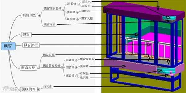 1.飘窗构件细分:飘窗包含的构件类别见图7。