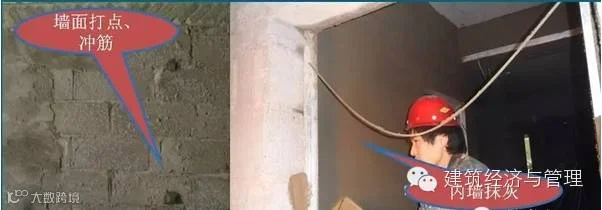 二次结构完成经结构验收合格开始施工,施工内容:外架局部调整、基层处理、不同材料交接处钉钢丝网、浇水、喷浆、挂垂线、分洞口、分层抹灰、养护等。参考工期90天。