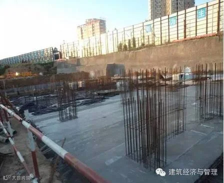 尤其注意:桩头防水应严格按设计要求施工确保与底板防水层整体一致,保护层施工完毕后,引定桩测设出筏板边线、剪力墙、柱子等位置(即基础放线,用红漆标示主要构件位置)。