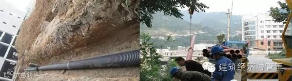 从开挖到完成地面以下的全部隐蔽工程,常需经历多次降雨、周边堆载、振动、施工不当等许多不利条件,其安全度的随机性较大,事故的发生往往具有突发性。最常用的支护型式为土钉墙喷锚支护。