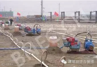 若设计基底高程低于地下水位,在基坑开前要进行降水工程。因此开挖前需把地下水位降低到边坡面和坑底以下,以防止边坡的塌陷和流,并保证过程中处于疏干和坚硬的工作条件下进行开挖。