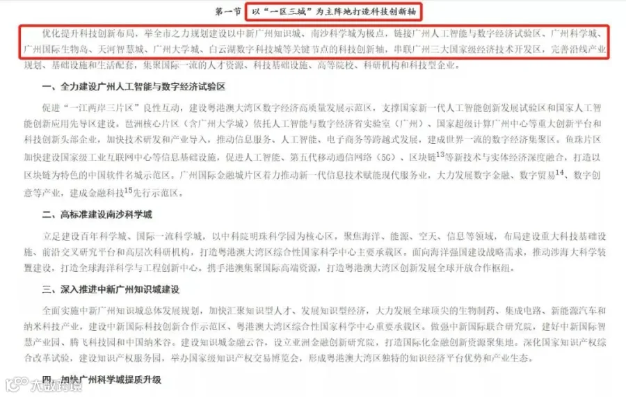 搜索显示,《纲要》提到黄埔却高达40次、知识城20次!