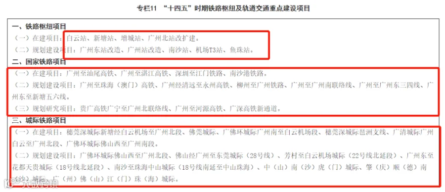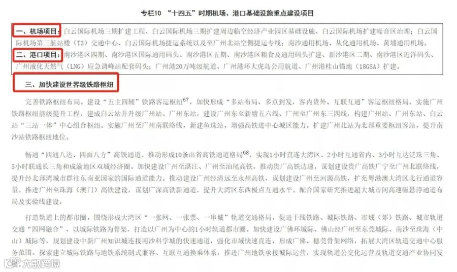 其中,“十四五”期间将围绕白云机场、南沙港口项目重点发展。