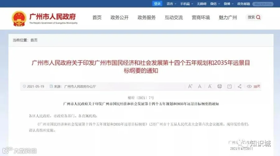 2021年5月19日,广州市人民政府印发了《十四五规划和2035年远景目标纲要的通知》(以下简称:十四五规划),释放了不少重要信号!
