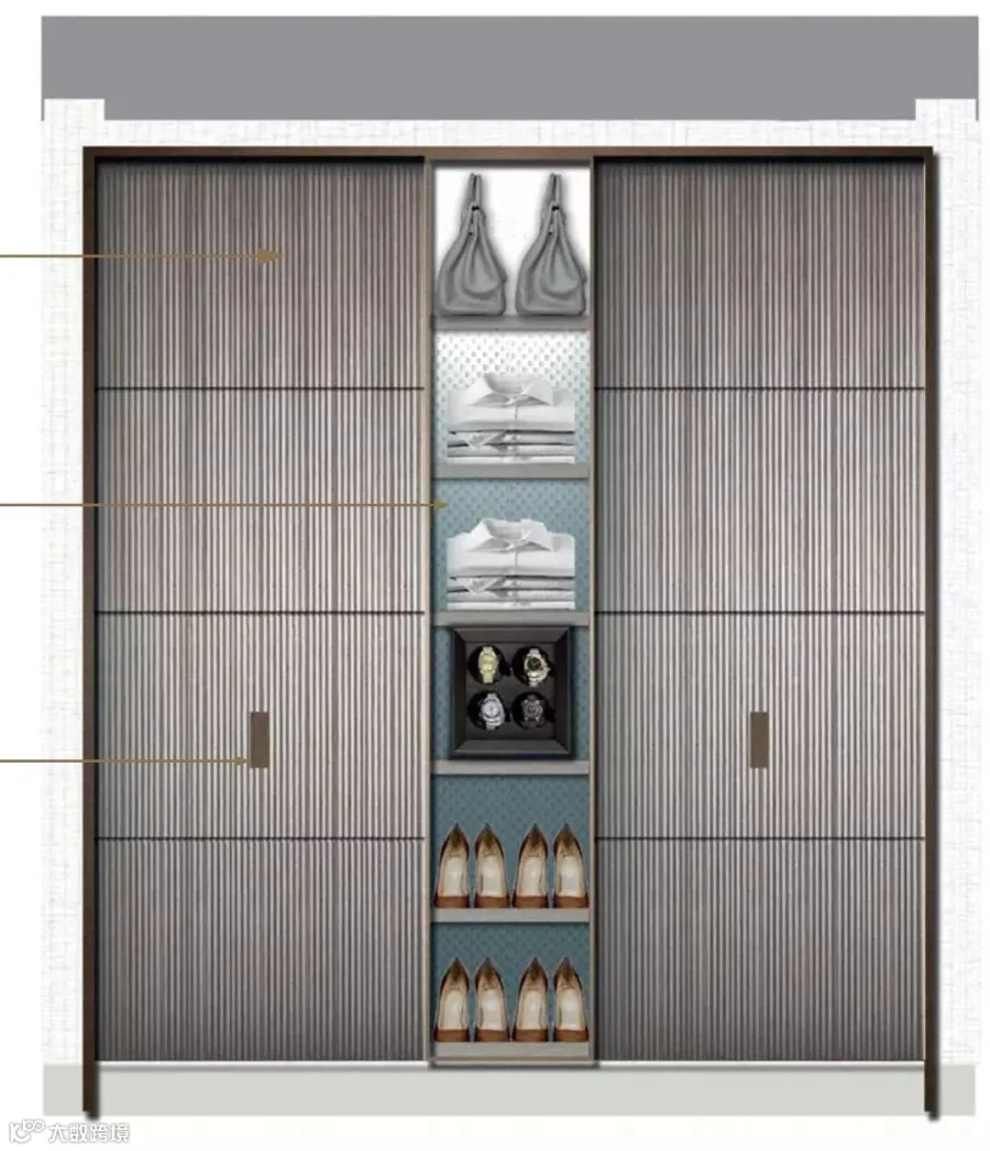 45度拼纹的木饰面、变化的金属层架