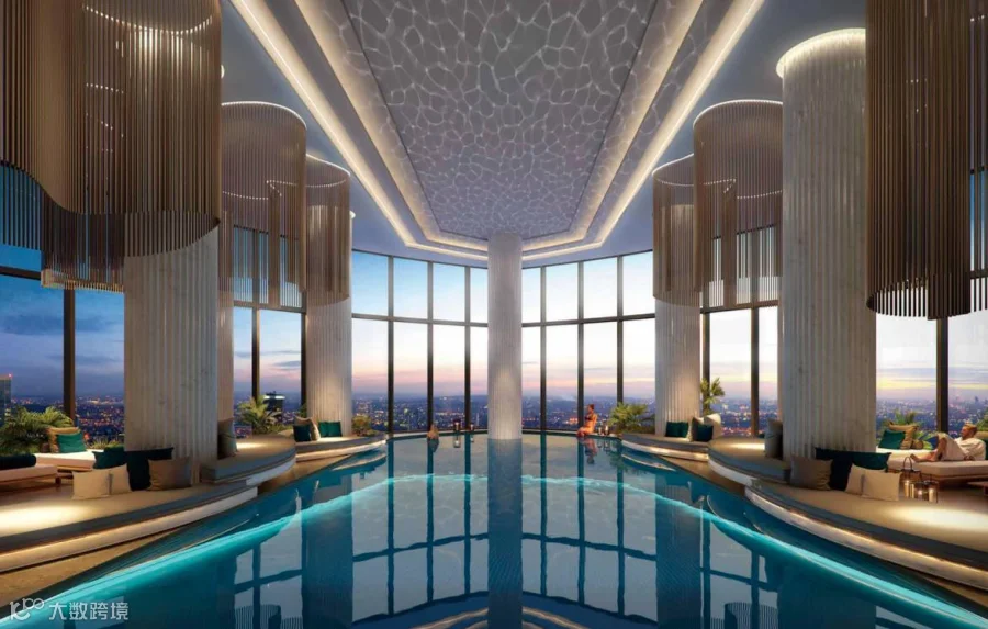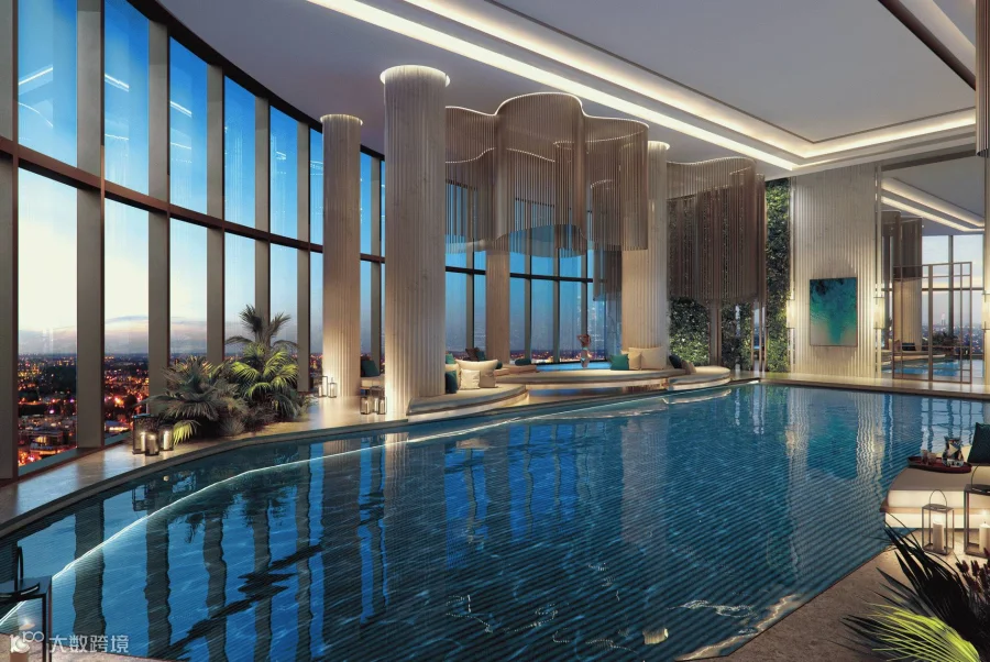 设计师将两层挑高的恒温泳池