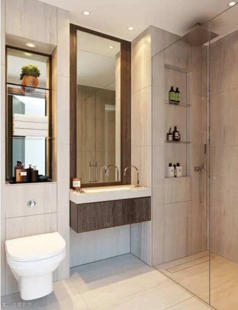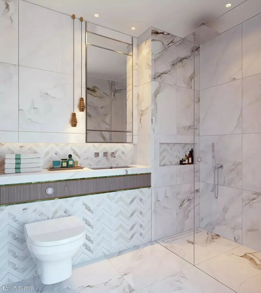 卫生间有着两种不同色调的设计