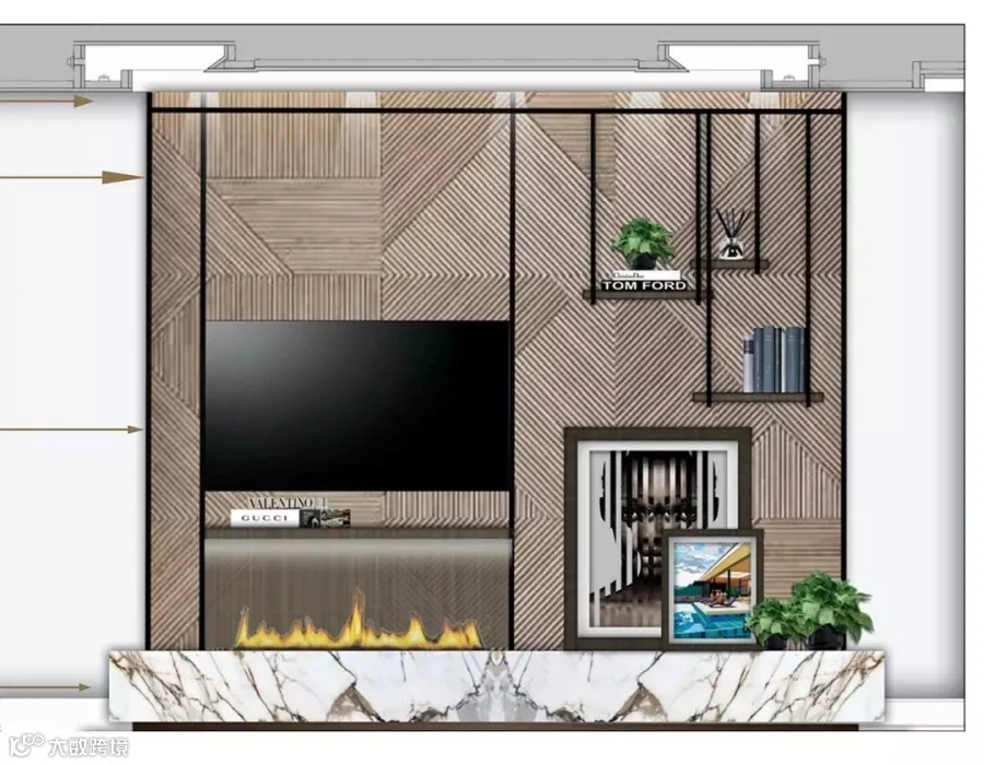 形成一个完整而有层次的电视背景墙