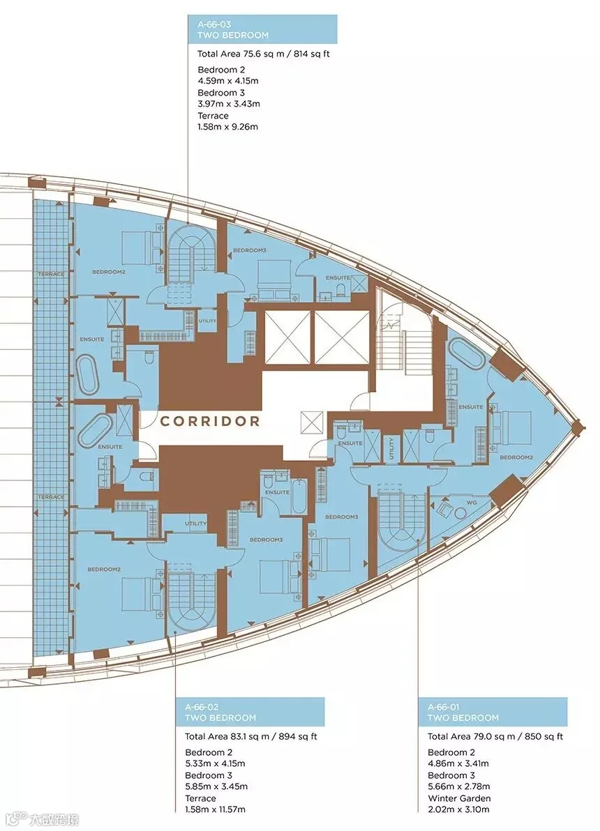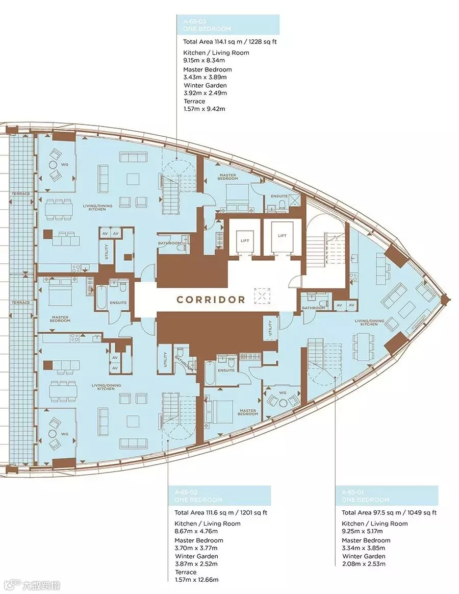 有着3套顶层复式户型