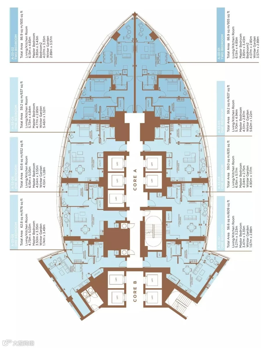 B筒体放大平面图(33F)