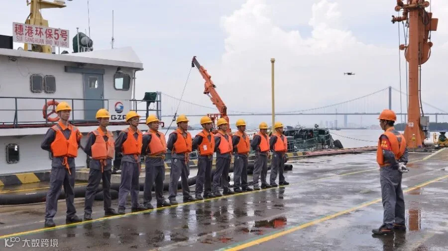 身上的对讲机,不时传来工作任务指示,小小的话筒,连接着我和我的同事们。收到任务后的我们,会严格检查设备确保设备能够运行通畅,检查完毕驾驶船舶准时抵达目的地完成清污和系解围油栏任务。日复一日年复一年,如此繁杂琐细的任务我们执行了无数次,在浩瀚的海域之上,我们携手完成一次又一次急难险重的任务。数次的联防体演习让我们练就时刻戒备的警惕心、高强度的训练让我们为应急时积累大量有益经验、数次的实战锻炼让我们在应对事故船舶溢油情况时更加从容不迫。
