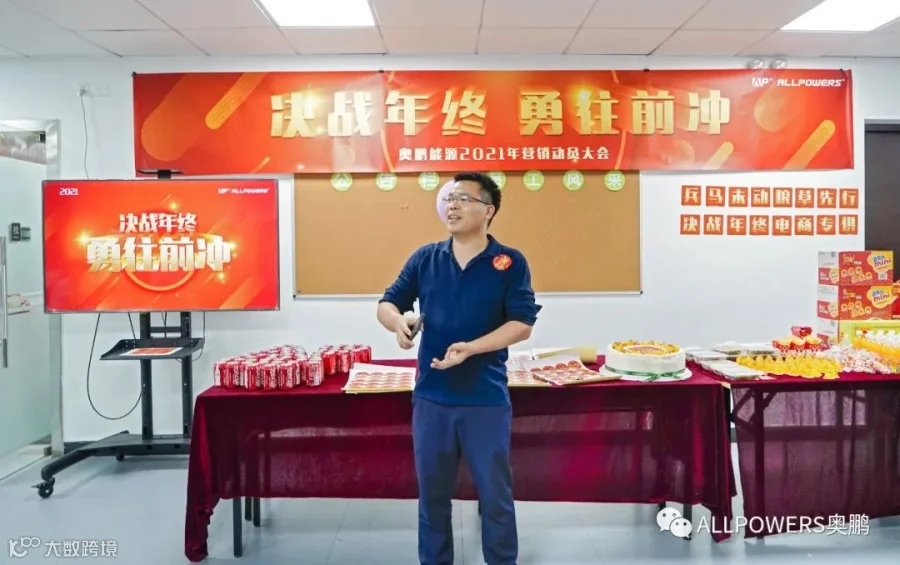 奥鹏能源科技有限公司召开以“决战年终,勇往前冲!”为主题的2021年营销动员大会,全体员工齐聚一堂,在年终电商旺季到来之际齐心决战60天,以振奋的面貌、激昂的行动勇往前冲,争创佳绩!