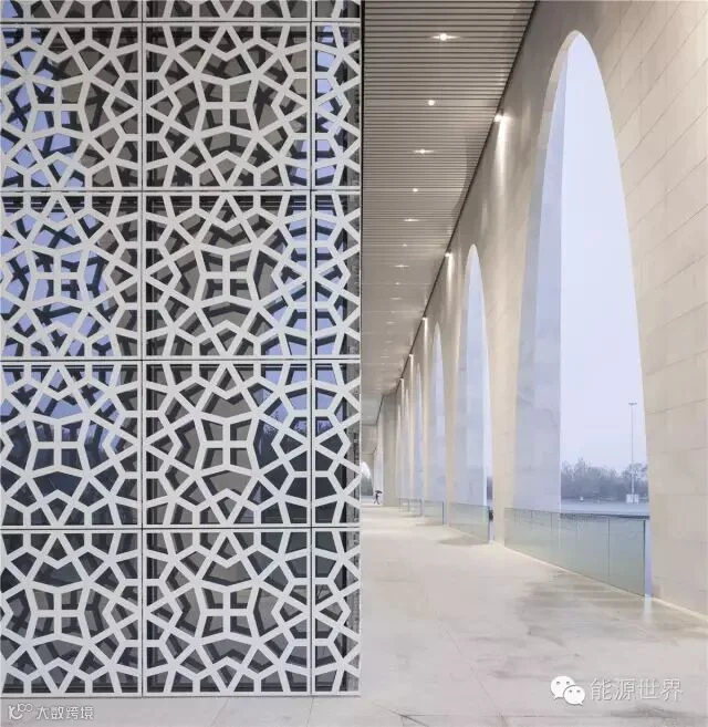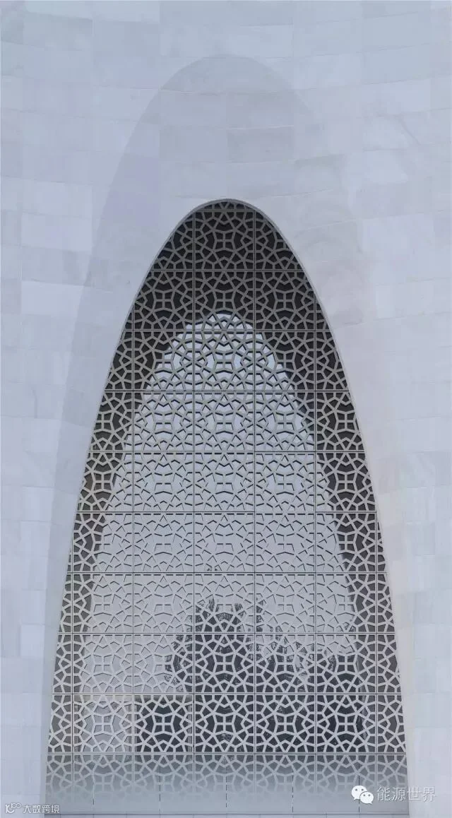建筑主体大面积使用了伊斯兰崇尚的白色,纯净的色调更突显建筑外廊特殊的形态。