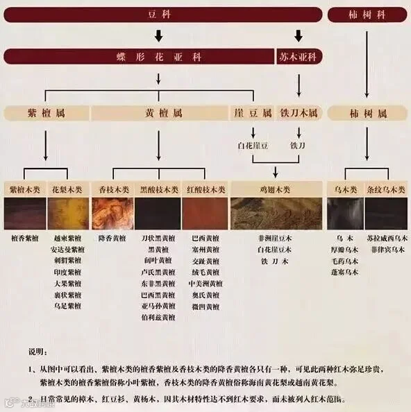 从下面这张红木分类图可以看出: