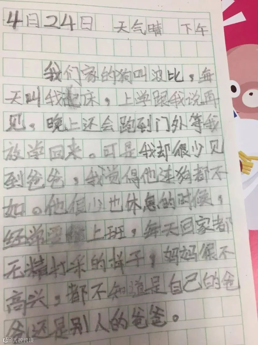现如今也有很多讨伐爸爸在孩子成长中缺位的文章,可是,爸爸们的常态真的是大家经常抱怨的,将孩子和家庭都抛在一边不闻不问吗?就像文章开头提到的那位狗都不如的爸爸,他看到儿子的作文后弱弱地说,“对于儿子,我也很自责,平时对孩子关注太少,但是工作特殊也无可奈何。”