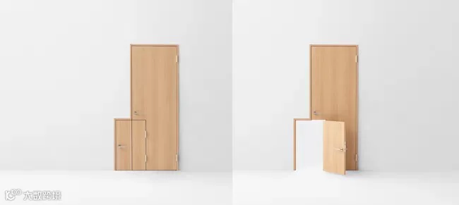 一种小时候搭积木的即视感,美好的童年回忆满溢啊~据说这是移用了「窗」的概念,让门也能像窗一样具有使空间延展的效果。
