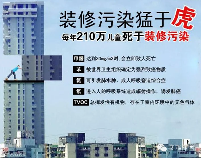 装修污染成杀手,我国每年有210万妇女儿童因上呼吸道感染死亡,其中100多万5岁以下儿童的死因与室内空气污染有关。