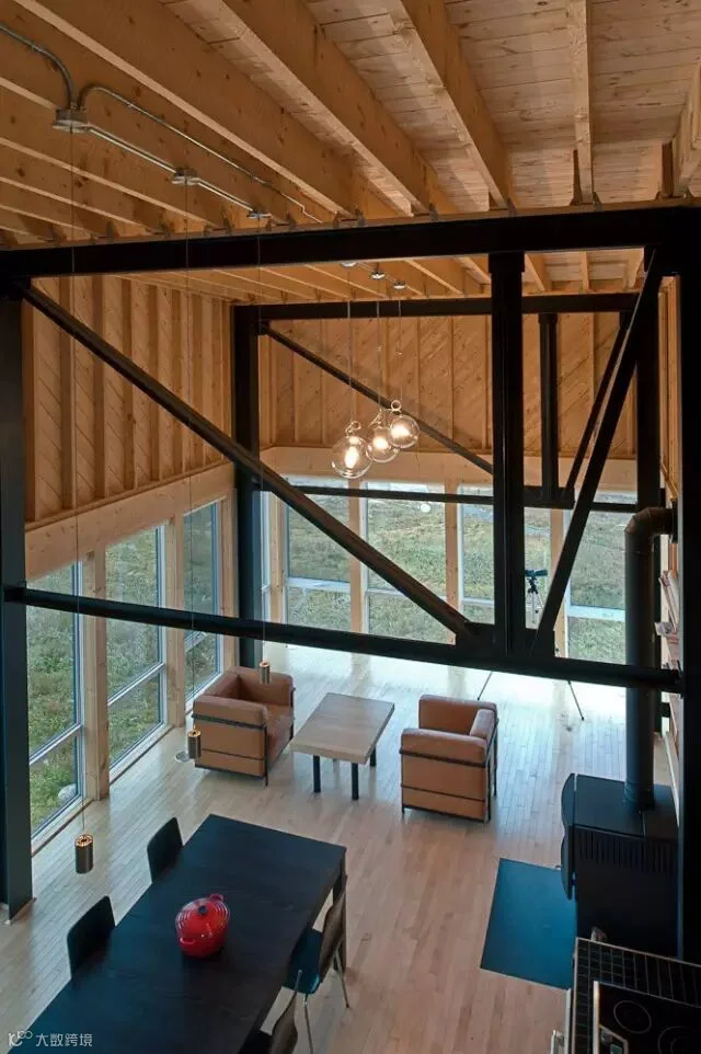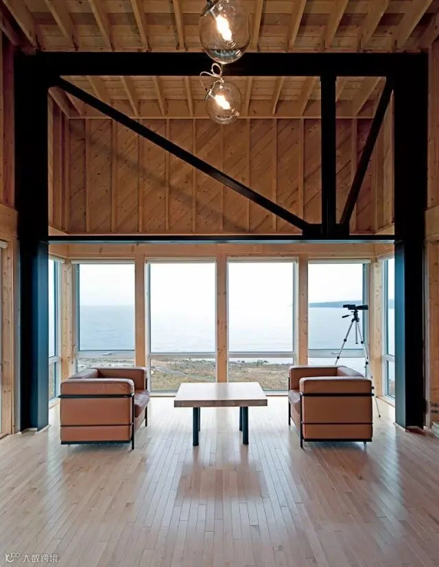 与其令人窒息的景观体验对比,这座房子的造价并不高。除了底下的钢梁支撑,整个房子的基本架构也是由轻型钢搭建的,我们从室内的照片中可以看到它们的存在。外围采用的是当地传统的轻型雪松木板,可以抵御这里极不稳定、风化率极高的气候。
